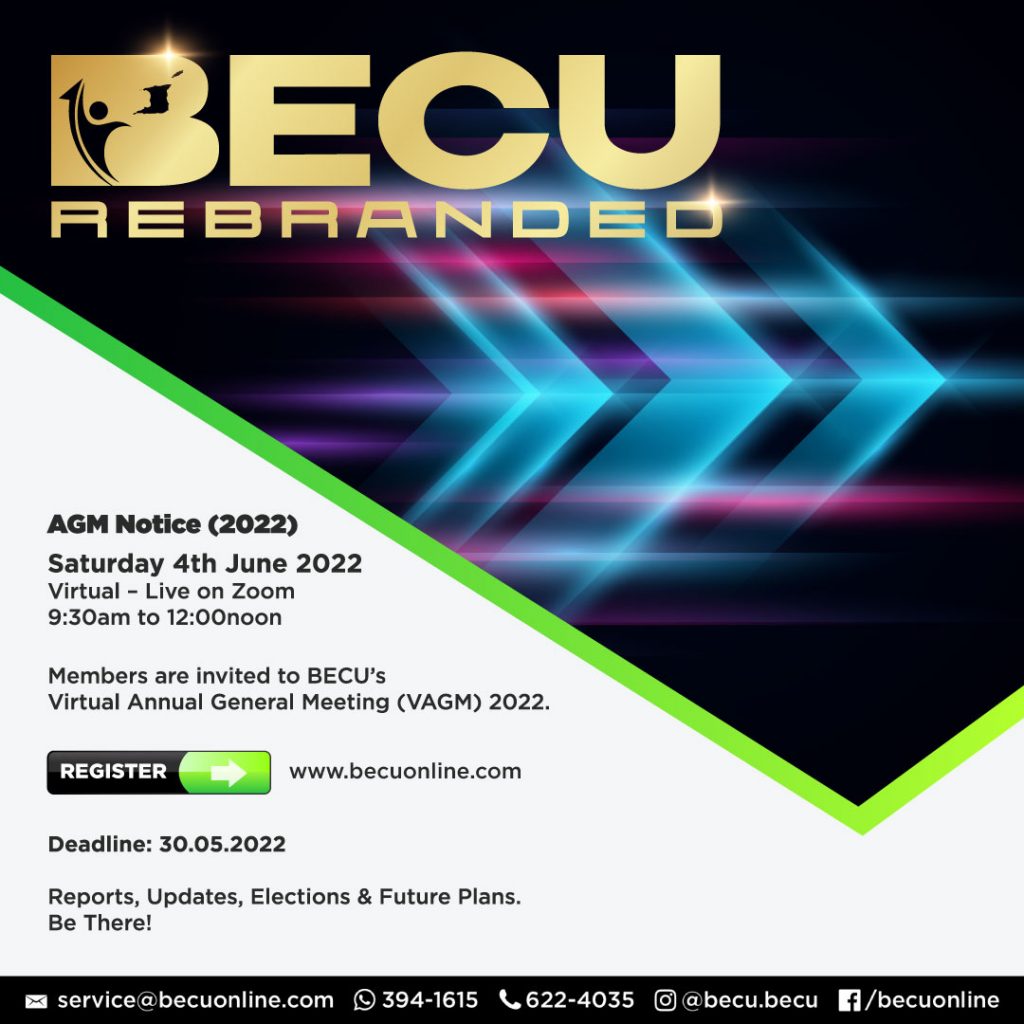 AGM 2022 Notice AGM 2022 Notice CALL 622-4035 | Email service@becuonline.com 21 Mar 2025 BECU Welcome Loan 14 Mar 2025 Life Saver Loan 04 Feb 2025 Who Can Join BECU? 05 Jul 2024 Notice of the 39th Annual General Meeting 2024 05 Jul 2024 Nominations are open! Categories Uncategorized Promotions Media